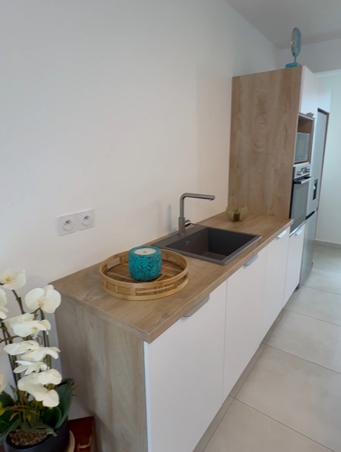 Pensée pour s’adapter à votre quotidien, cette cuisine optimisée allie esthétique contemporaine et fonctionnalité intelligente. Chaque centimètre est exploité avec précision : rangements discrets, circulation fluide, plans de travail ergonomiques et solutions sur mesure qui simplifient chaque geste. Les matériaux ont été sélectionnés pour leur durabilité et leur élégance, créant un espace à la fois chaleureux et parfaitement organisé. Plus qu’une cuisine, c’est un lieu de vie harmonieux où design et praticité ne font qu’un.